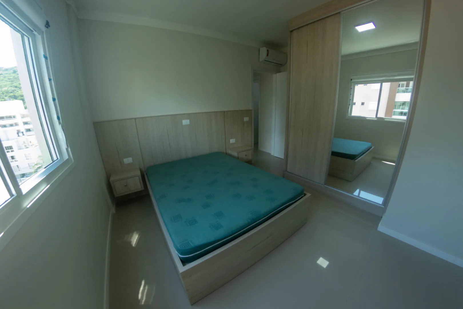 01 Dormitório Suíte com acomodação para 02 pessoas, sendo: 01 cama de casal em estrutura de madeira.