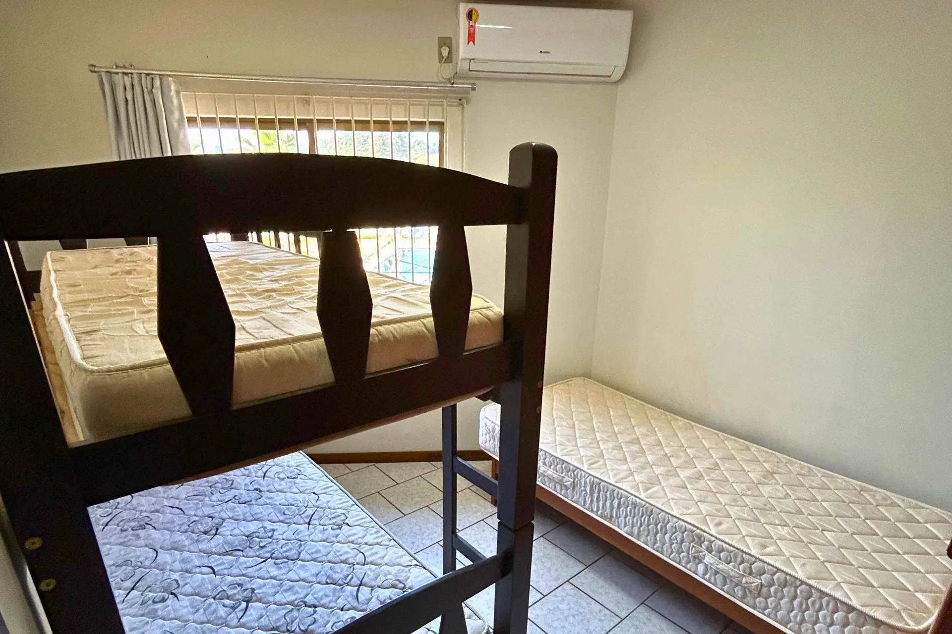 01 Dormitório com acomodação para 03 pessoas, sendo: 01 beliche e 01 cama de solteiro com estrutura de madeira com colchão de espuma.